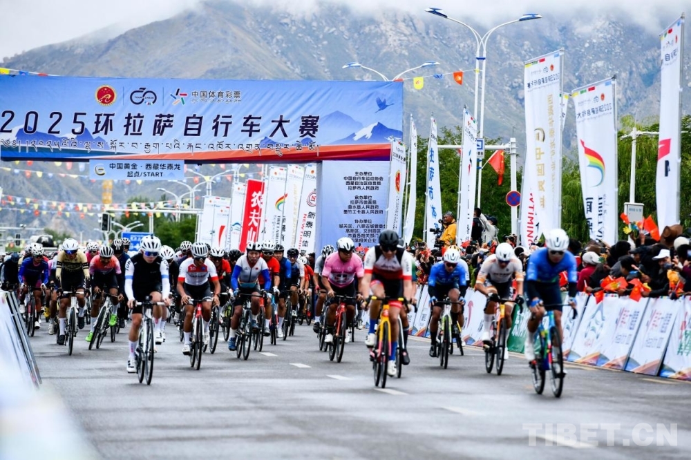 图为2025环拉萨自行车大赛公路自行车男子精英组出发 摄影:赵振宇