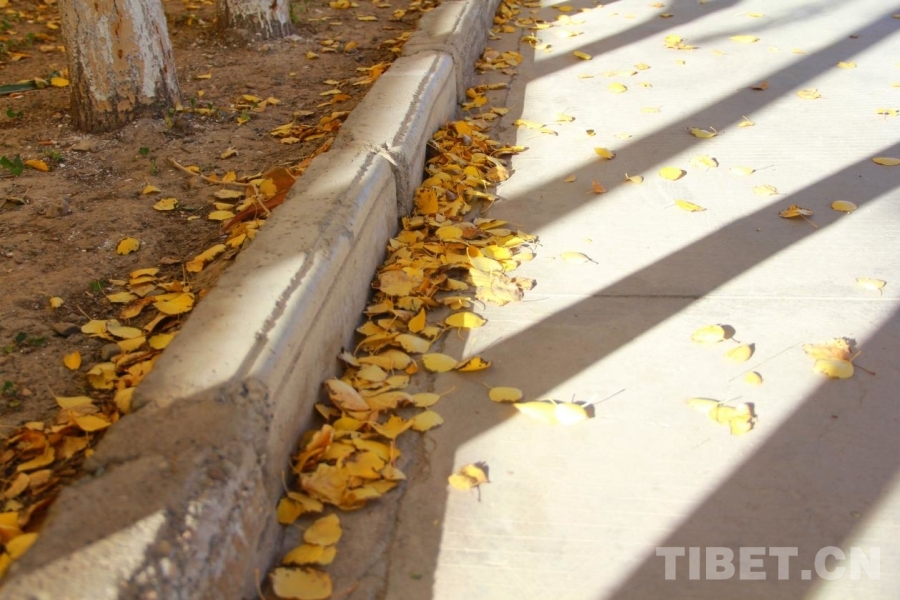 图为阿里狮泉河镇,落叶满地 摄影:赵钊