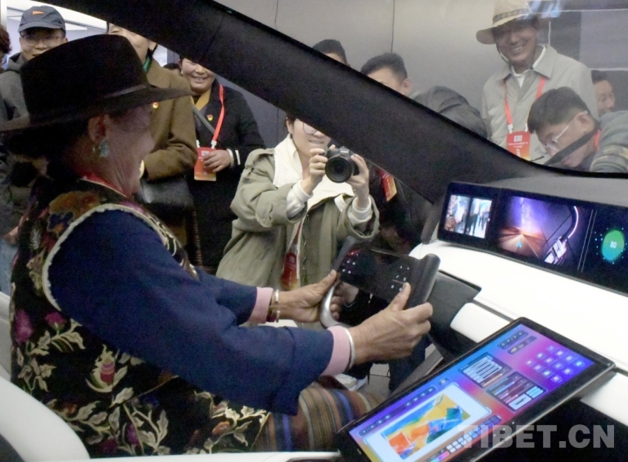 图为西藏林芝波密县基层干部体验智能汽车驾驶 摄影:唐召明