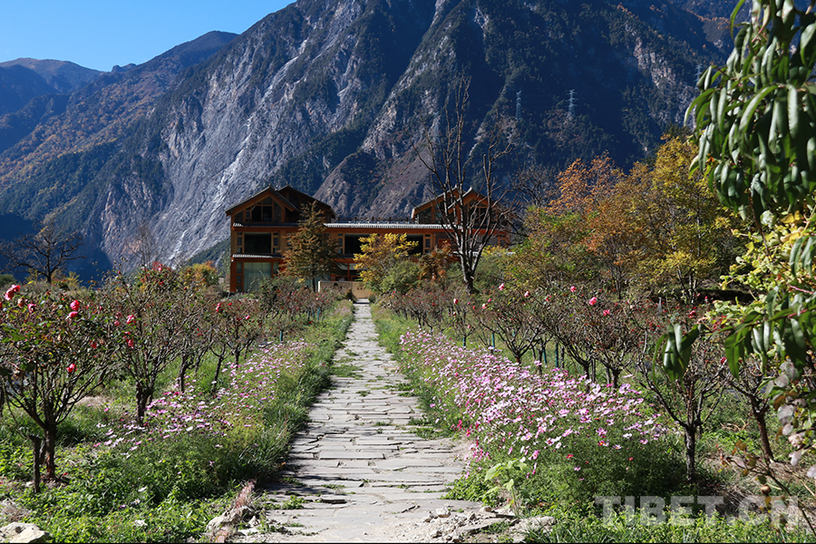 全村保留了村庄原貌,对32户藏式古寨进行风貌改造,新建了停车场、人工湖、民宿等设施。在这里看不见一根电线杆,因为全村“五线下地”。房屋和道路边都种树栽花,村容村貌更显世外桃源般的优雅闲适。