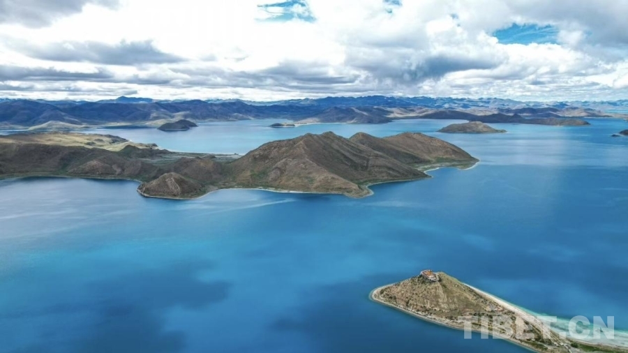 图为西藏山南市浪卡子县羊卓雍错一角(航拍图)
