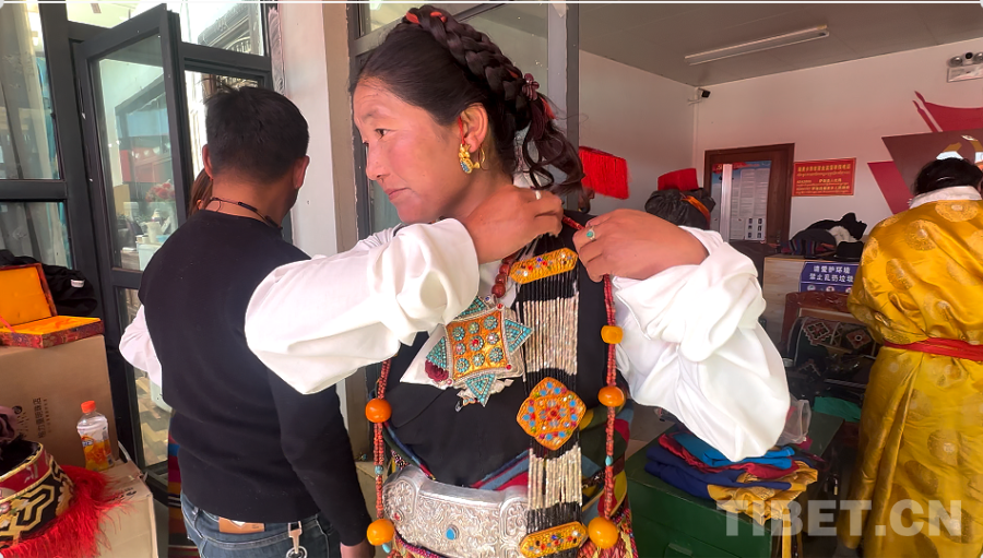 身着传统服饰的曲堆“谐钦”队演职人员在整理配饰