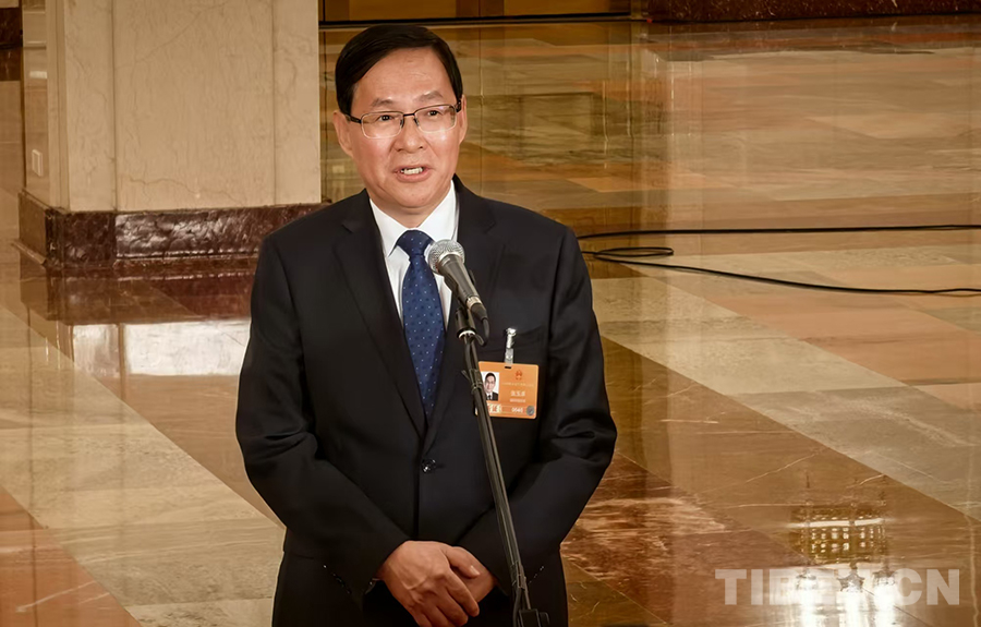 科学技术部部长阴和俊接受媒体采访 摄影:刘莉