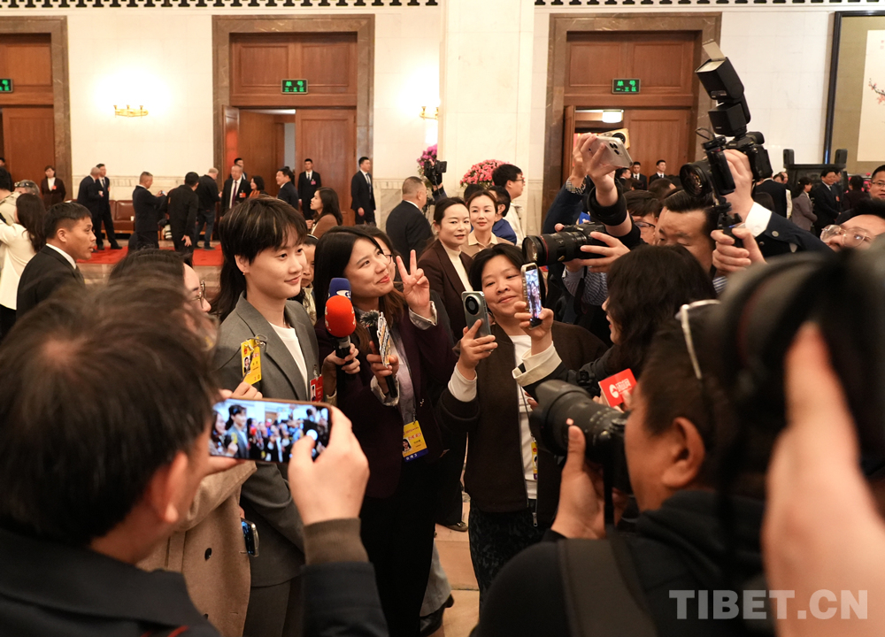 中国西藏网讯 3月12日,十四届全国人大四次会议第三场“代表通道”集中采访活动在人民大会堂举行,邀请部分全国人大代表接受采访。(中国西藏网 记者/刘莉 边子捷摄影报道 编辑/周晶)