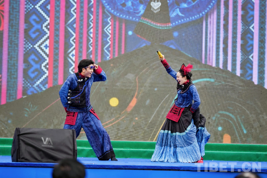 在藏彝风情文艺展演环节,林芝歌曲与彝族经典曲目轮番登场,《七月火把节》更是点燃全场热情。情景舞剧《嘎拉村的欢笑》以质朴表演传递感恩之情,尾声由两地艺术家携手唱响《天籁之爱》,生动展现了民族一家亲的深厚情谊。