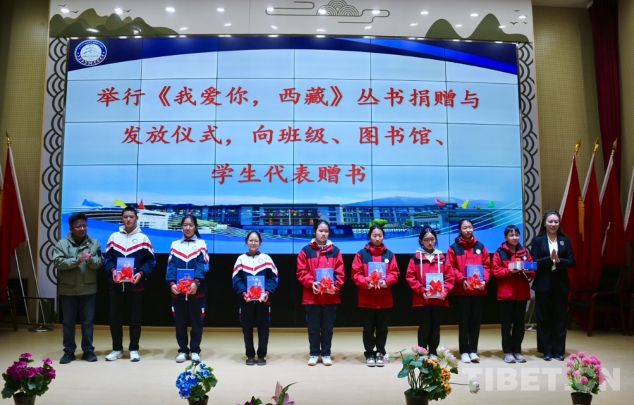 仪式上,拉萨江苏实验中学学生代表带来了“我爱你,西藏”主题朗诵,字字句句饱含对祖国的赤诚热爱,展现出师生昂扬向上、心系家乡的精神风貌。随后,举行了爱心图书捐赠仪式,新东方教育科技集团捐赠《我爱你,西藏》丛书,以实际行动支持书香校园建设。