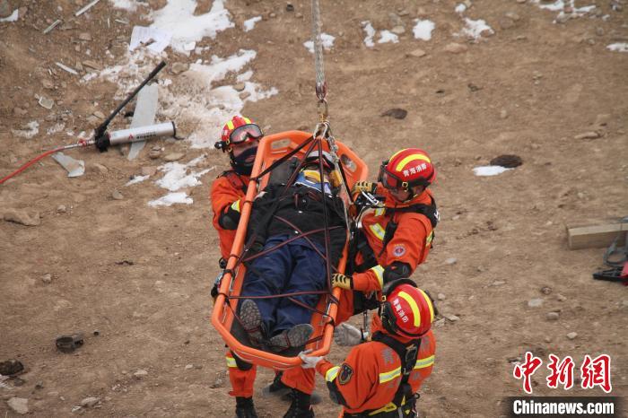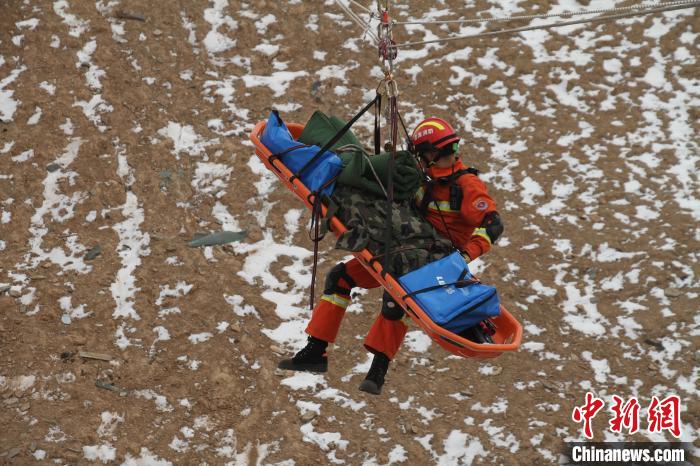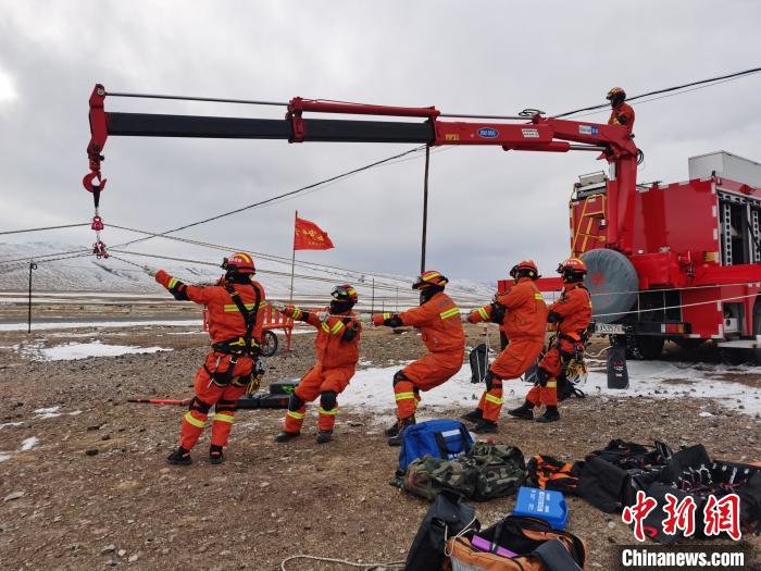 图为玉树州消防救援支队进行斜下救助。陈强 摄