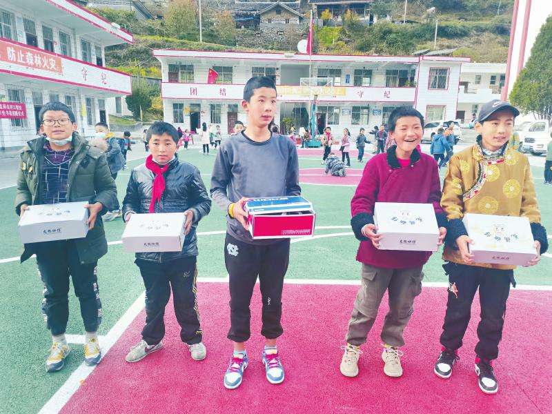 去年11月12日,在九龙县三岩龙乡小学,由青白江区弥牟镇物流商会捐赠的86双加绒运动鞋送到了学生们的手中。三岩龙乡平均海拔3300米,冬季气温低,“这下不用担心学生们冻脚了。”该校校长骆朝文说。