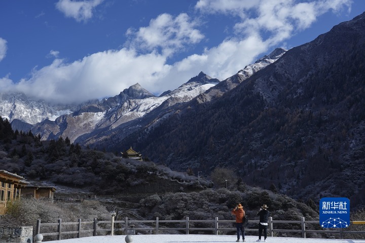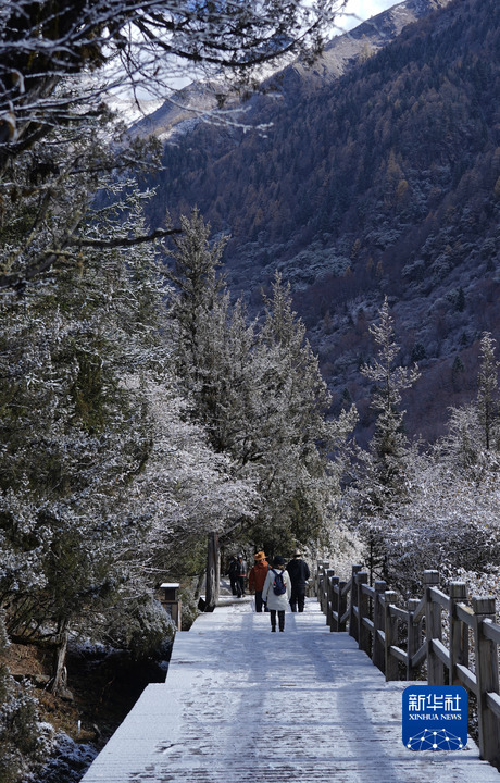 11月8日,游客在四姑娘山长坪沟景区内游览。新华社记者 冯家顺 摄