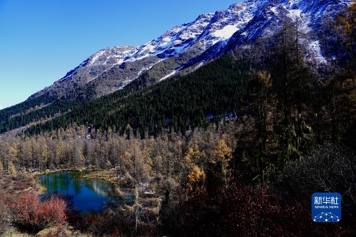 11月13日,四姑娘山双桥沟风光如画。双桥沟是四川省阿坝藏族羌族自治州四姑娘山景区三沟之一,全长40余公里,面积约216.6平方公里。沟内山势陡峭,曲折幽深,山水相依,草木相间,云遮雾绕,宛若仙境。中新社记者 安源 摄