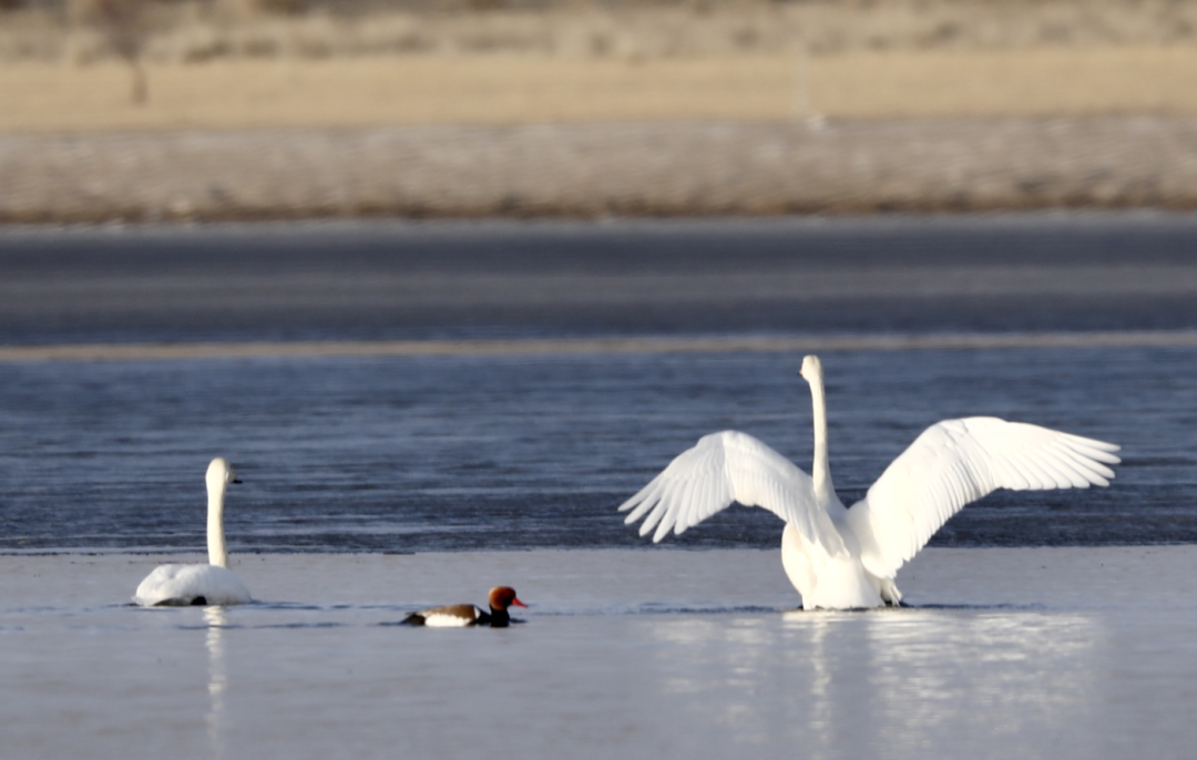 近日,青海省海南藏族自治州贵德县再次迎来数百只天鹅“做客”,一群天鹅或在湖面嬉戏,或在水中觅食,在蓝天碧水的映衬下呈现出一幅生态美景。