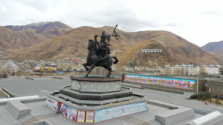 这是青海省玉树藏族自治州玉树市格萨尔王广场(无人机照片)。新华社记者 张宏祥 摄