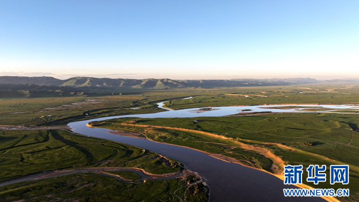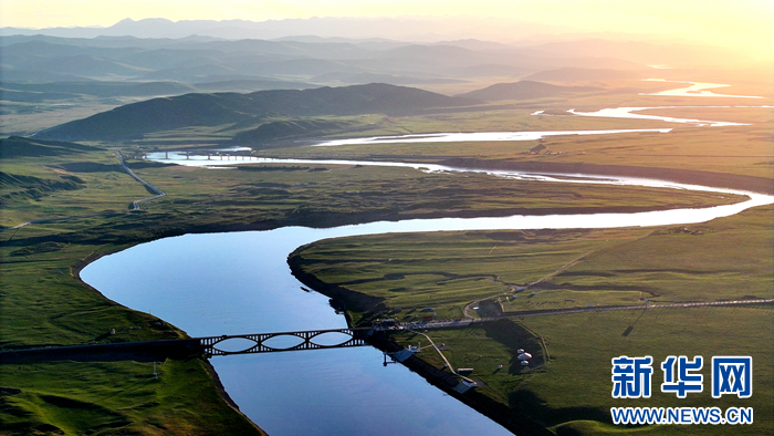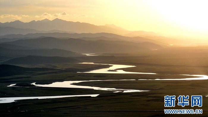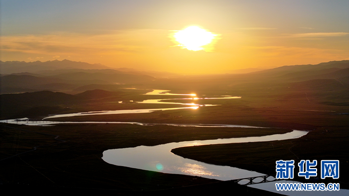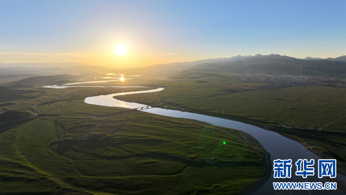 夏天是甘肃省甘南藏族自治州玛曲县最美的季节。夕阳西下,阳光透过漫天红云,照在青青草原、蜿蜒黄河上,金色笼罩、光波跳动,景致壮美迷人。近年来,玛曲大力实施湖泊湿地保护、草原生态保护与修复、防洪治理等生态治理项目,黄河玛曲段的生态环境得到明显改善。