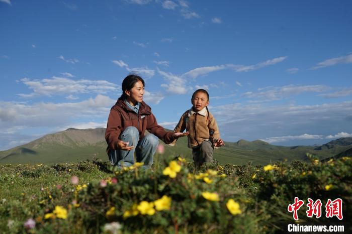 图为麻切仁措与弟弟在草原上唱歌玩耍。马铭言摄