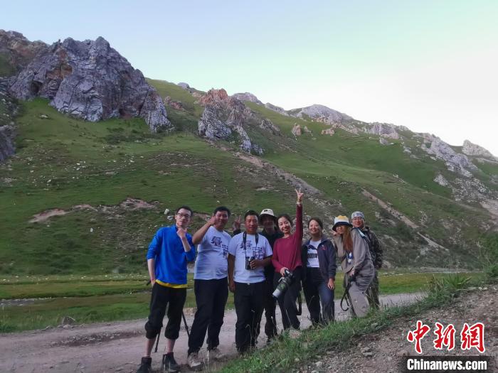 图为桑周(左三)和自然体验者在昂赛大峡谷内合影。三江源国家公园管理局 供图