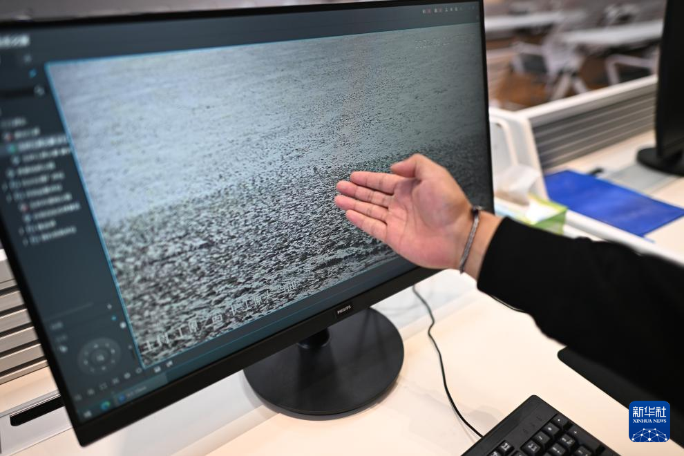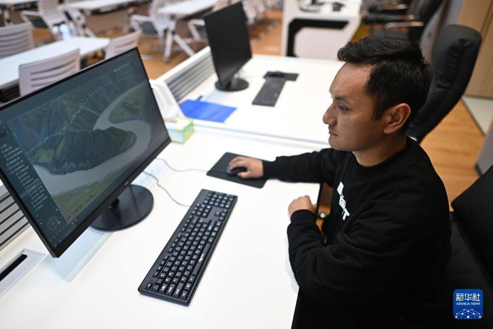 9月22日,玉树州生态环境局宣教信息科工作人员曲达朋措展示长江源流域当曲的实时监控画面。新华社记者 张宏祥 摄