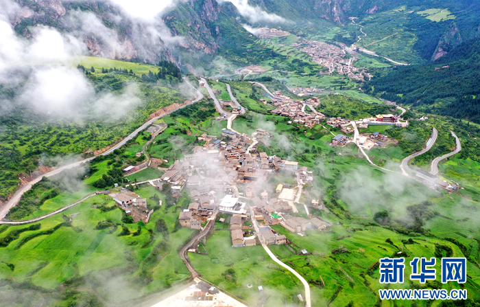 雨后扎尕那行政村业日自然村云雾缭绕,宛如仙境。新华网 王生元 摄