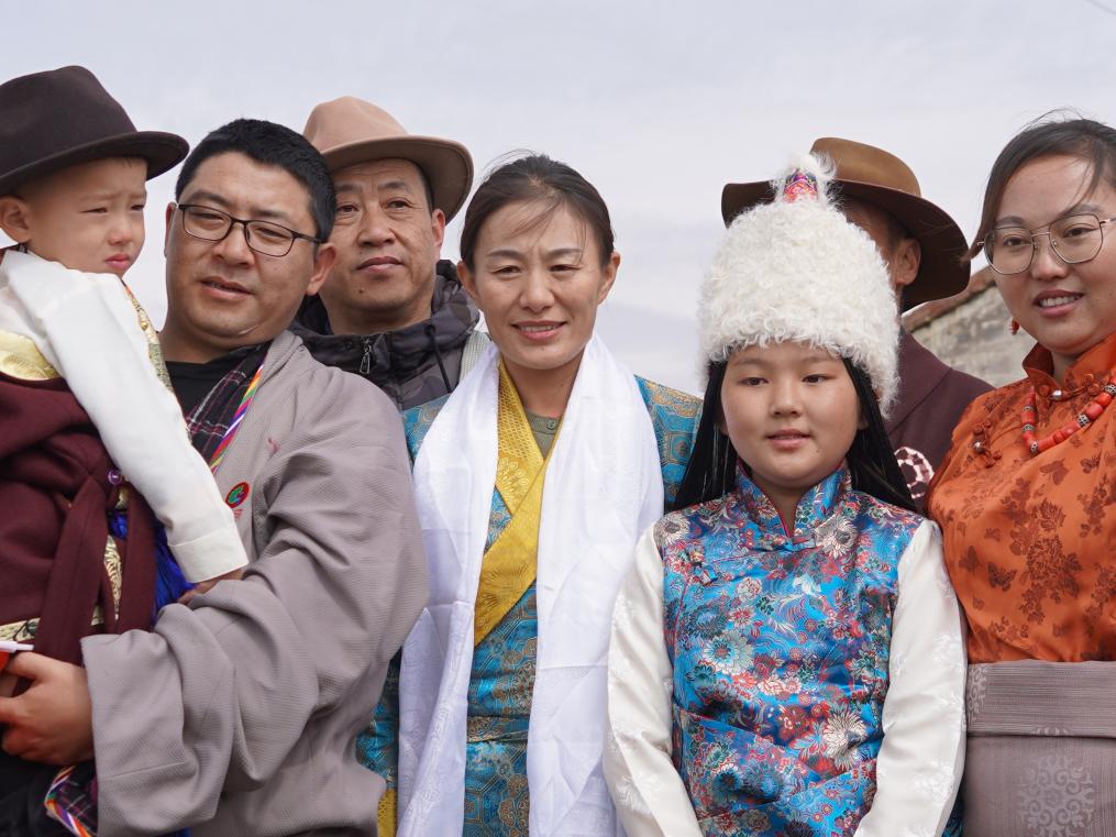 在家门外,看着乡亲们骑着马、捧着哈达,切阳什姐,这个从小生长在金银滩草原的姑娘,接受乡亲们的祝福时,眼睛不由得湿润了。她动情地说:“感谢父老乡亲这么多年对我的关注和支持。希望我能让家乡的孩子们看到更多的可能性,看到世界的多样性,看到草原外更广阔的天地。”