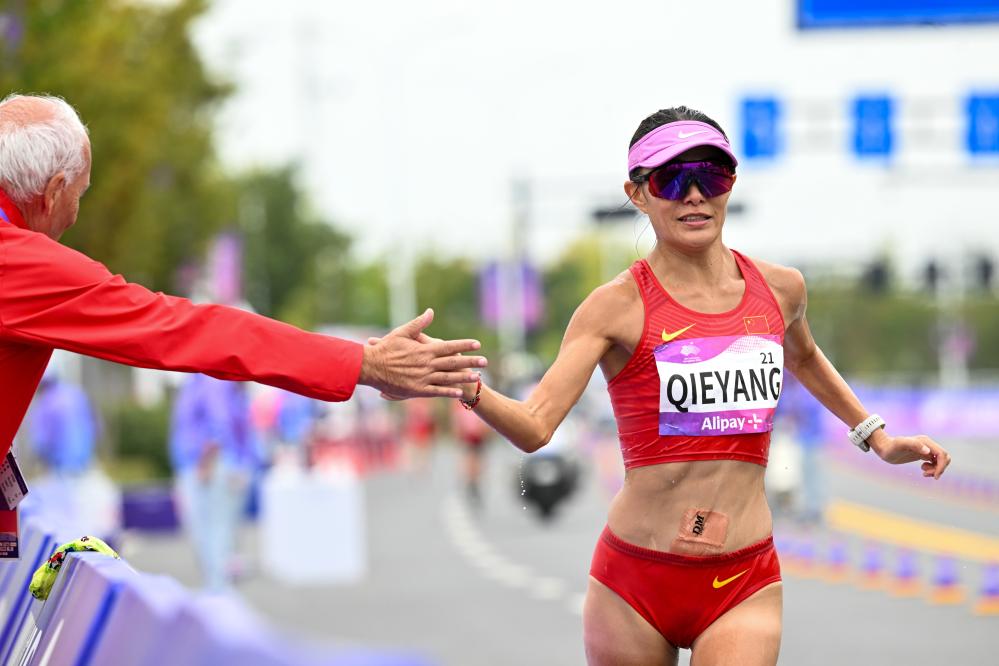 中国队混合35公里竞走创亚洲纪录 青海姑娘切阳什姐亚运会夺金圆梦
