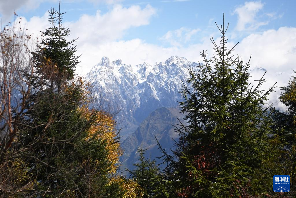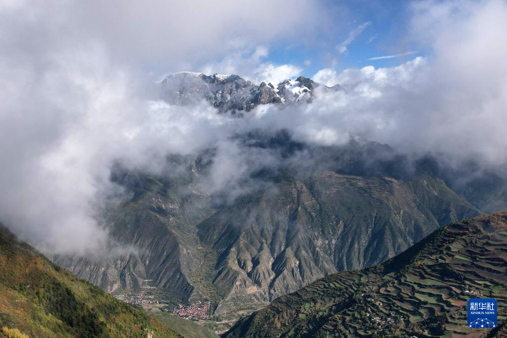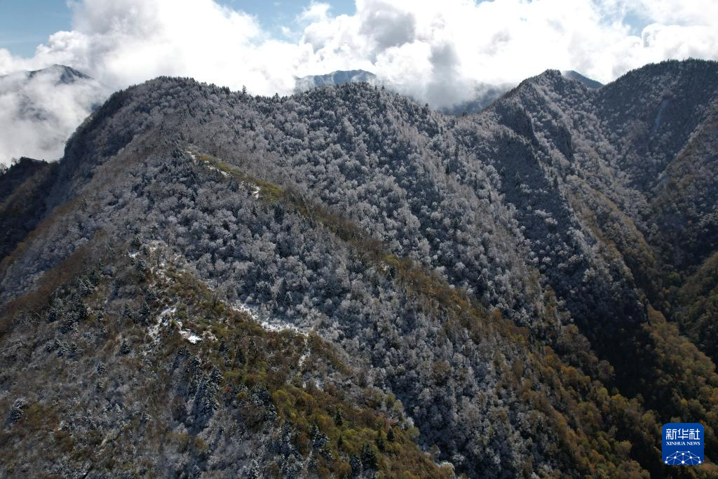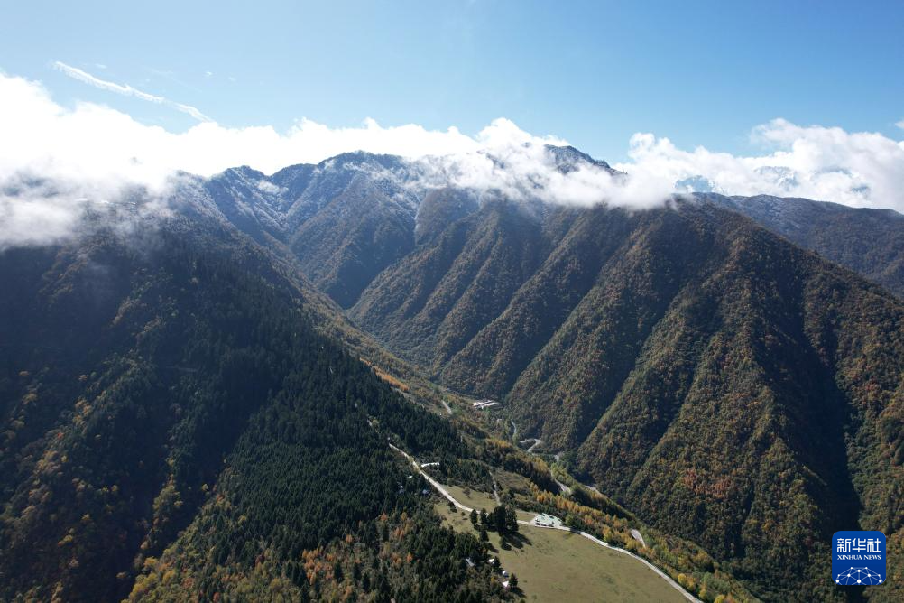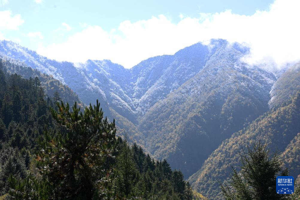 金秋时节,位于甘肃省甘南藏族自治州舟曲县境内的拉尕山秋意渐浓,一场秋雪降临后,拉尕山云缠雾绕,斑斓如画。