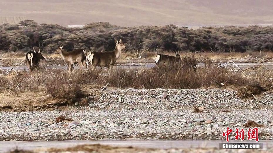 青海湖最大补给河畔马鹿结伴“撒欢”