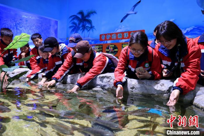 图为学生与海洋生物互动。薛蒂 摄