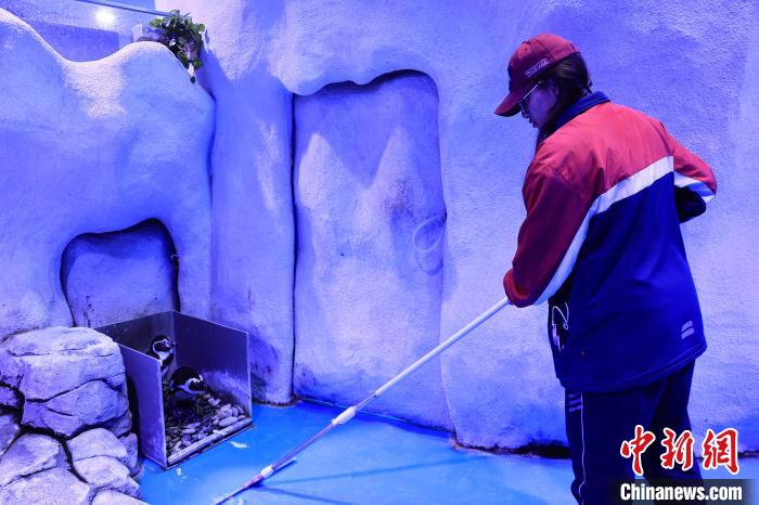 图为学生体验清扫企鹅生活区。薛蒂 摄