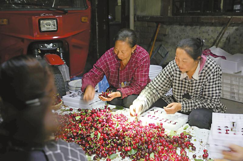 去年开始,在张有为的带动下,较场村引进理县金田野公司,搞村企合作,同时依托“三地四方”机制,与浙江乐清市、遂宁市船山区、理县形成合力,积极推动农产品变商品,定标准、做包装、树品牌,并在宣传设计、销售渠道、售后服务上下功夫。“今年,理县政府和我们与四川一家航空物流公司商谈,共同打通车厘子直飞浙江温州和江西南昌的直销渠道。”张有为说,这为理县农特产品走向更宽阔的市场奠定了坚实基础。