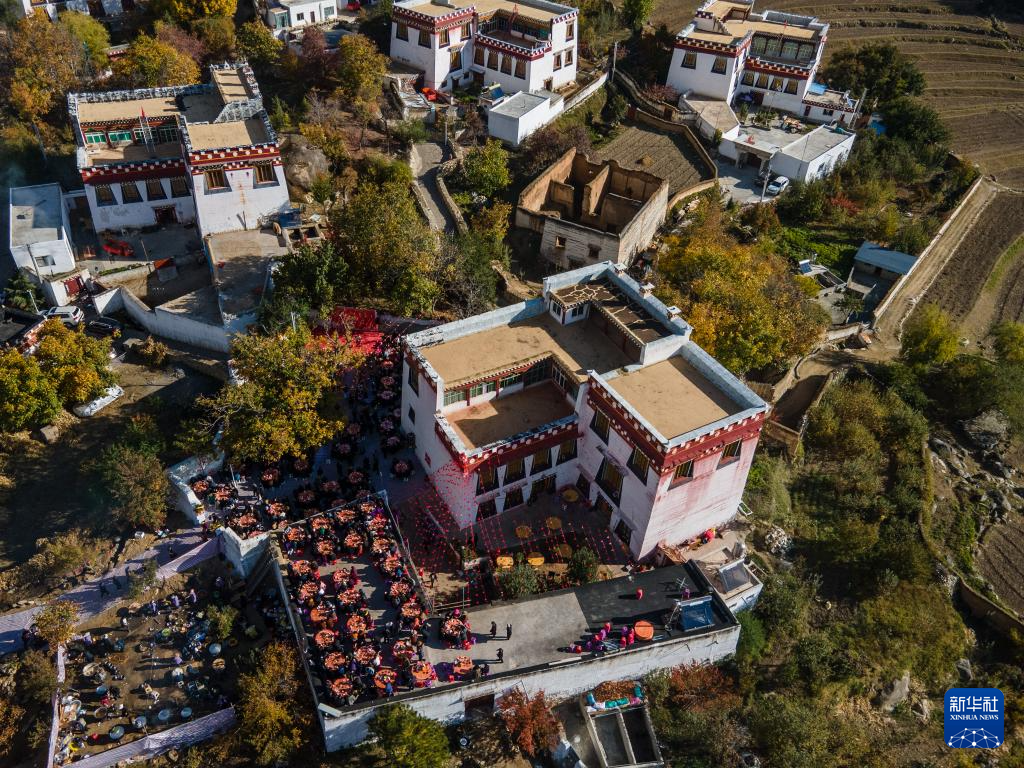 这是11月2日在仲德村拍摄的一场婚礼现场(无人机照片)。新华社记者 储加音 摄