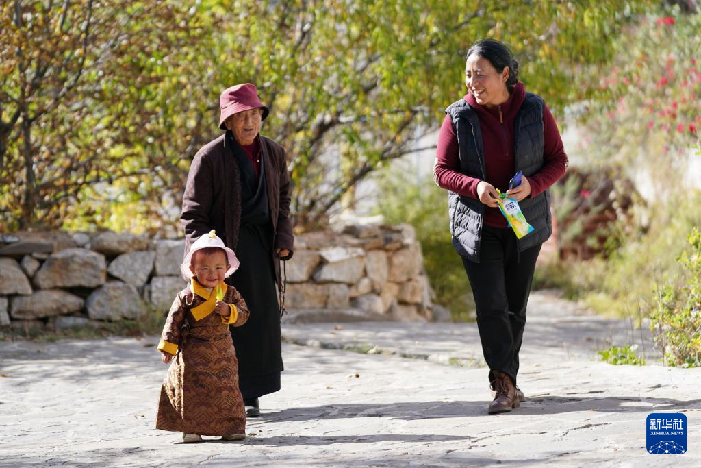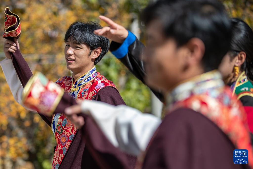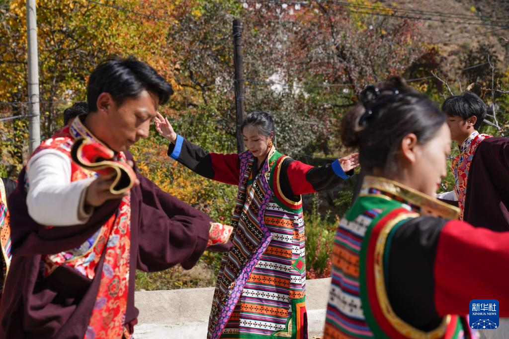 11月2日,舞蹈演员在仲德村表演乡城锅庄舞。新华社记者 储加音 摄