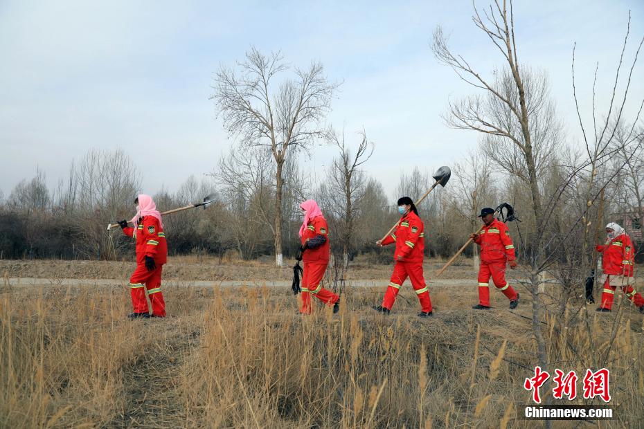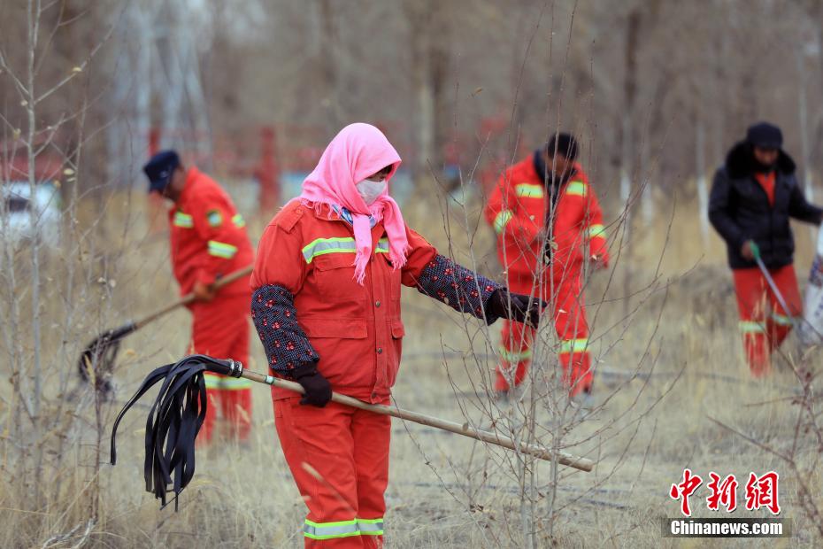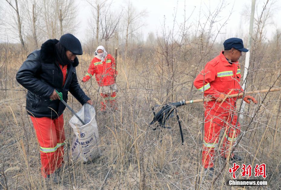 12月9日,护林员在千亩林中心林地捡拾垃圾。中新社记者 王磊 摄