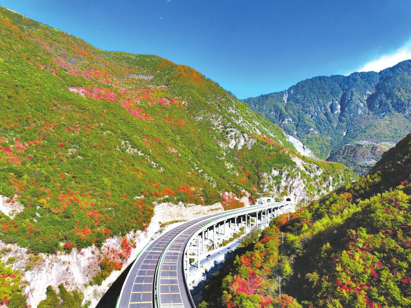 “2025年全线将建成通车!”蜀道集团川高绵九公司党委书记、董事长傅舰锋表示,九绵高速作为省内通向九寨沟景区的第一条高速公路,将沿线李白故里、九皇山、大熊猫国家公园等串点成线,将让更多中外游客更快速、方便体会四川的美丽与魅力,将改变九寨沟县、平武县沿线交通格局,将极大地推动沿线经济社会发展。(图片由蜀道集团川高绵九公司提供)