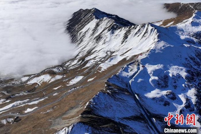 弯弯曲曲的公路翻过海拔4114米的夹金山垭口。记者 刘忠俊 摄