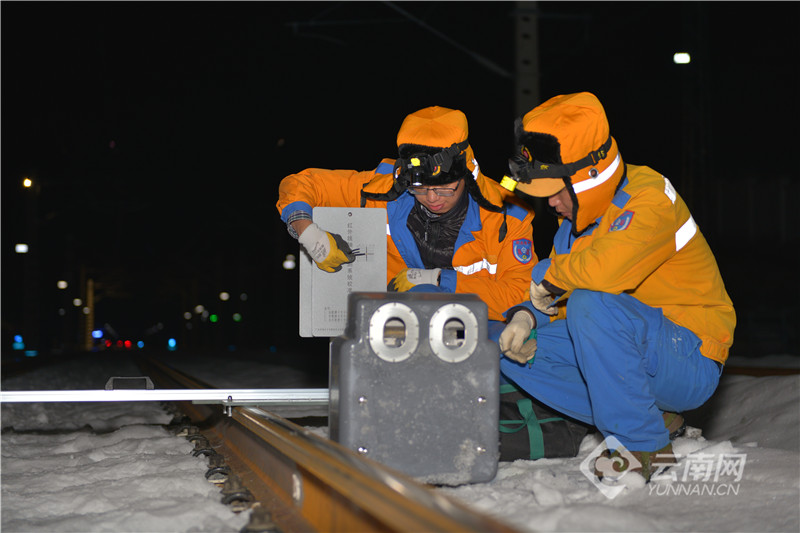 “维修‘天窗’命令下达,时间120分钟,今晚主要是校对THDS设备测温精度,一定要确保测温误差不超过3℃,现在气温只有零下5℃,大家注意保暖。”随着作业组长赵丽程一声令下,3名检车员步履匆匆沿着铁路线向作业点赶去。