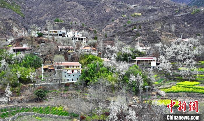 图为梨花丛中的村寨。中新社记者 安源 摄