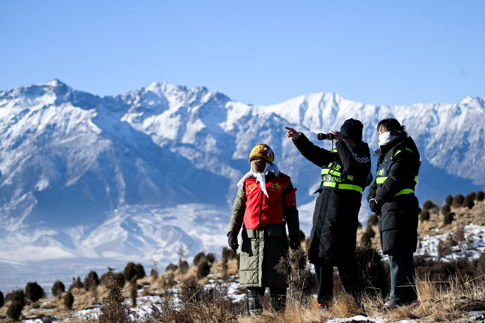 青海门源县境内的祁连山国家公园老虎沟管护站的生态管护员在巡护祁连山(2025年1月28日摄)。新华社记者 张龙 摄