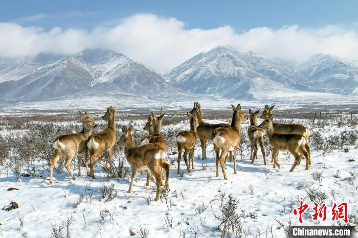2025年2月中下旬,雪后初霁的祁连山东段武威天祝马牙雪山下,野生保护动物狍鹿和马鹿在雪地中撒欢。王守辉 摄