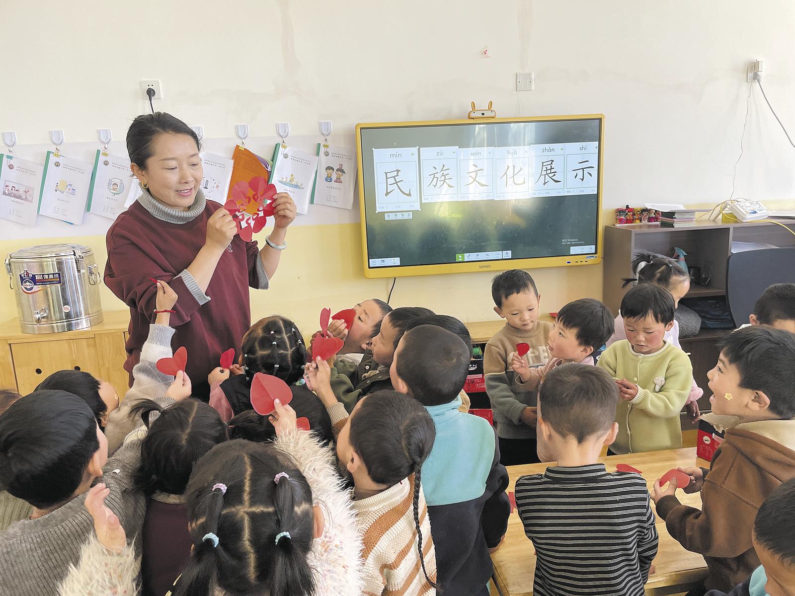 令才让拉毛倍感欣喜的是,党和政府对学前教育的重视程度与日俱增。她所在的这所幼儿园于2024年建成,从选址规划到师资配备,每一个环节都倾注着党和政府对民族地区教育教学的关注。如今,园内各类功能室一应俱全,设有教室、寝室、餐厅,还配备了舞蹈室、阅读室、绘画室、体育室以及充满童趣的娃娃之家等活动场所,不仅为孩子们打造了丰富多彩的成长空间,也成为开展民族团结进步教育的重要阵地。