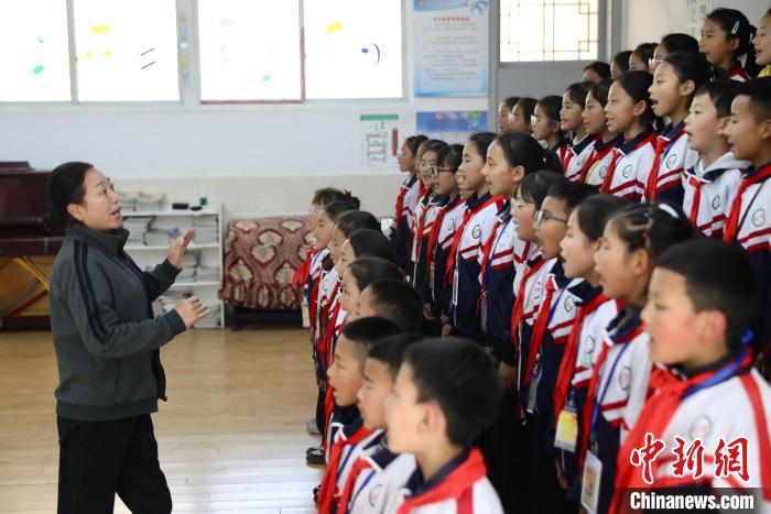 图为音乐老师胡嗣梅指导合唱团成员排练新歌。中新社记者 王磊 摄