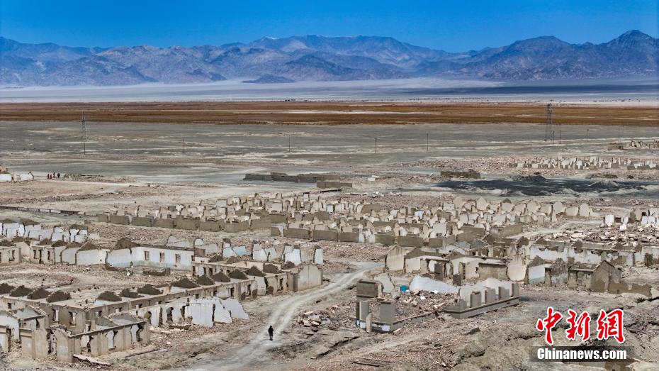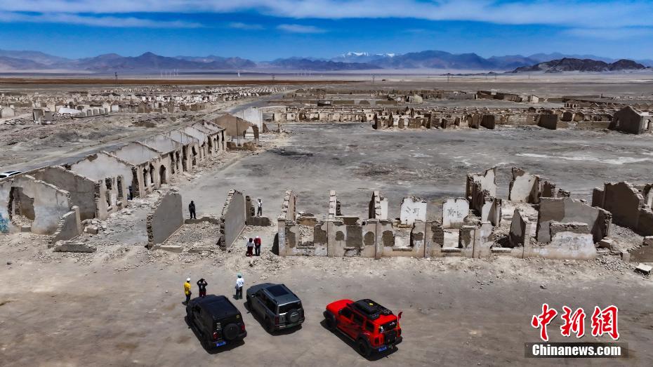 5月14日,航拍游客观光冷湖石油工业遗址。(无人机照片)中新社记者 马铭言 摄