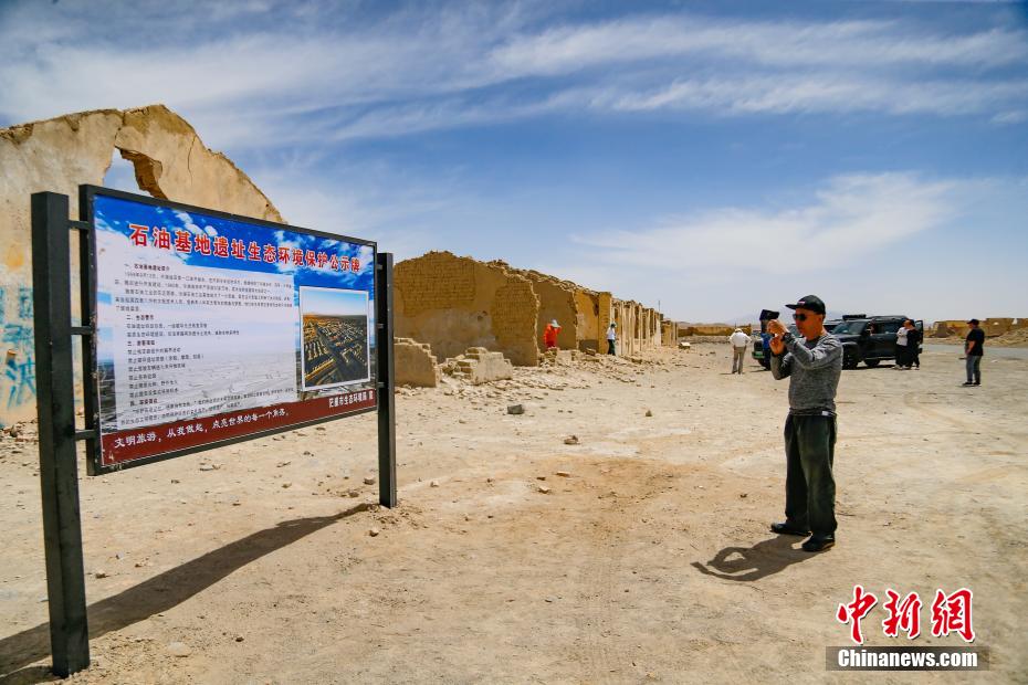 5月14日,游客观光冷湖石油工业遗址。中新社记者 马铭言 摄