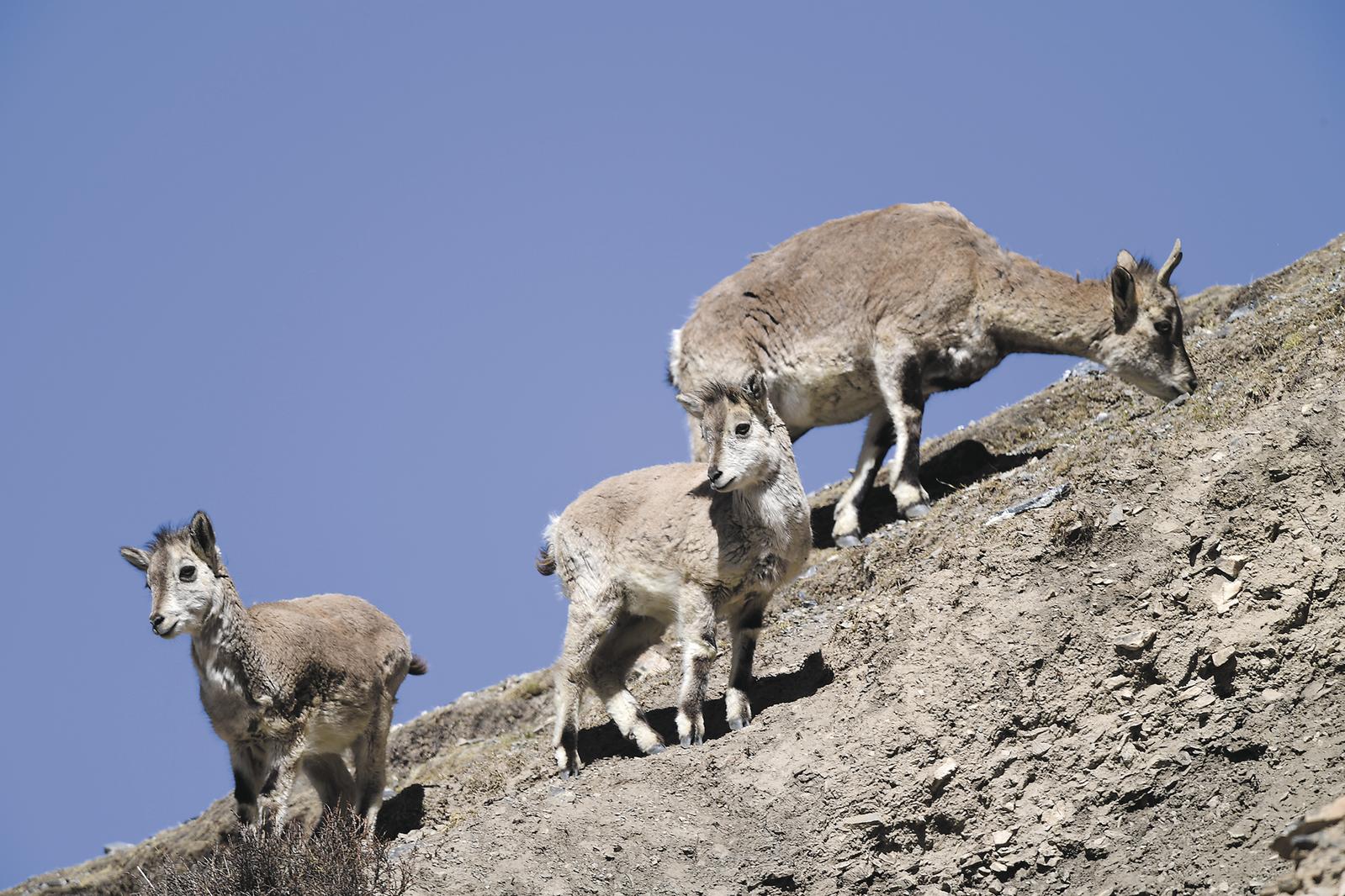 央隆乡境内的山脊,好奇的岩羊对着镜头“卖萌”。