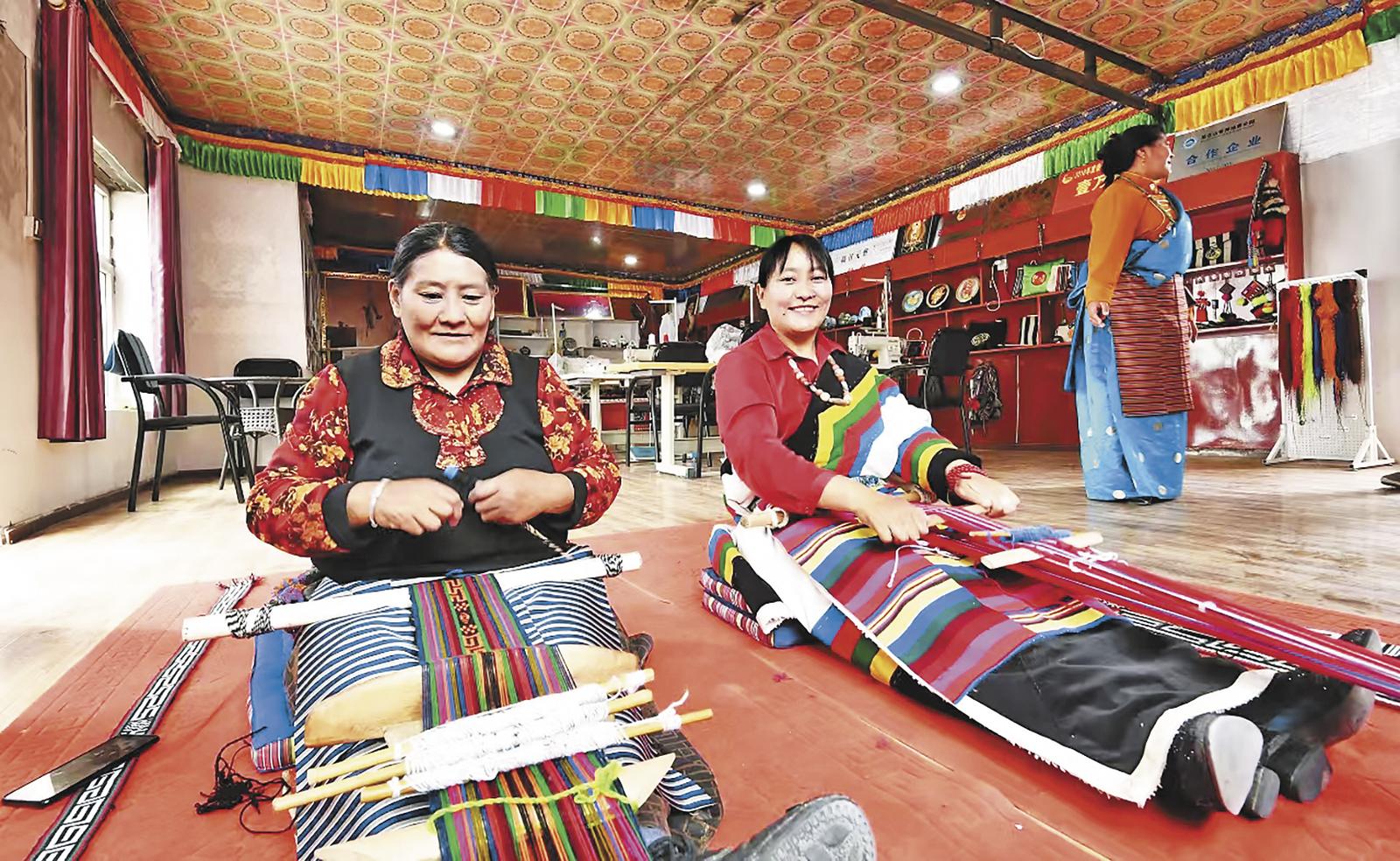 产业协作的热潮之下,文化的根脉正在这片土地深扎。走进岗巴布民族手工艺品合作社,氆氇的经纬间流淌着吐蕃时期的纹样,掐丝唐卡的金线里缠绕着藏传佛教的智慧,而讲解这些工艺品的,是能用流利汉语交流的藏族社员三木吉。