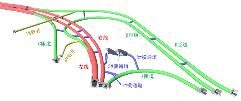 为了实现交通转换,这座“T”形枢纽包含了主线特长隧道1座,其中左线长度3025米,右线长度3050米;4座匝道隧道,最长的匝道超过1400米。