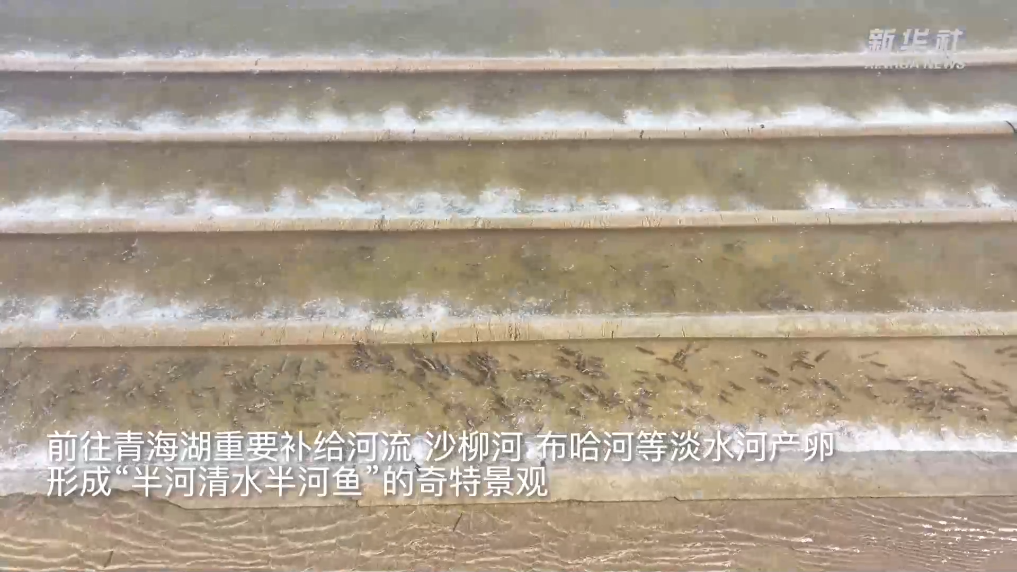 近日是湟鱼洄游产卵的高峰期,成千上万尾湟鱼一路逆流而上,前往青海湖重要补给河流——沙柳河、布哈河等淡水河产卵,形成“半河清水半河鱼”的奇特景观。