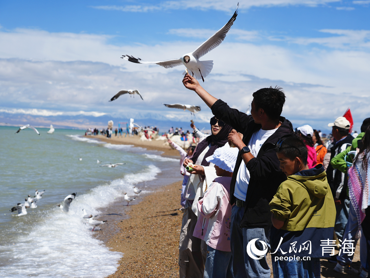 远山近水、鱼鸟共生、游人沉醉……盛夏时节,青海湖景区引得游人沉醉其间。一群群棕头鸥舒展着洁白的羽翼,在蓝天与碧水间自由地滑翔、盘旋,它们时而轻盈地掠过水面,时而在浅滩休憩,时而与青海湖裸鲤追逐嬉戏,成为青海湖生态之美最鲜活的注脚。