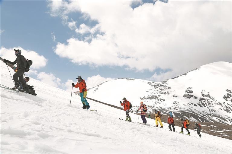 这里不仅是视觉的盛宴,更是勇者的天堂,作为登山探险的理想场所,吸引着无数人前来挑战自我。岗什卡雪峰游客服务中心门前,登山爱好者和徒步爱好者们正忙着穿戴雪具、整理物资,按批次在向导的带领下整装待发,整个景区内热闹非凡,人气火爆。
