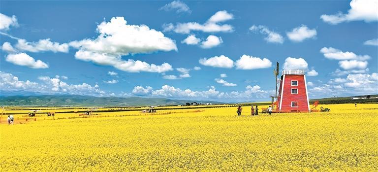 盛夏时节,油菜花竞相绽放,青海省海北藏族自治州门源回族自治县迎来一年中最绚烂的时刻。