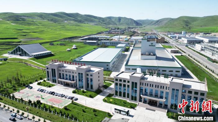 图为坐落在牧场旁的华羚乳品集团工厂,这种"前厂后牧"的布局,虽增加了物流成本,却从根本上解决了高原特色农产品"优质难优价"的痛点。九美旦增 摄