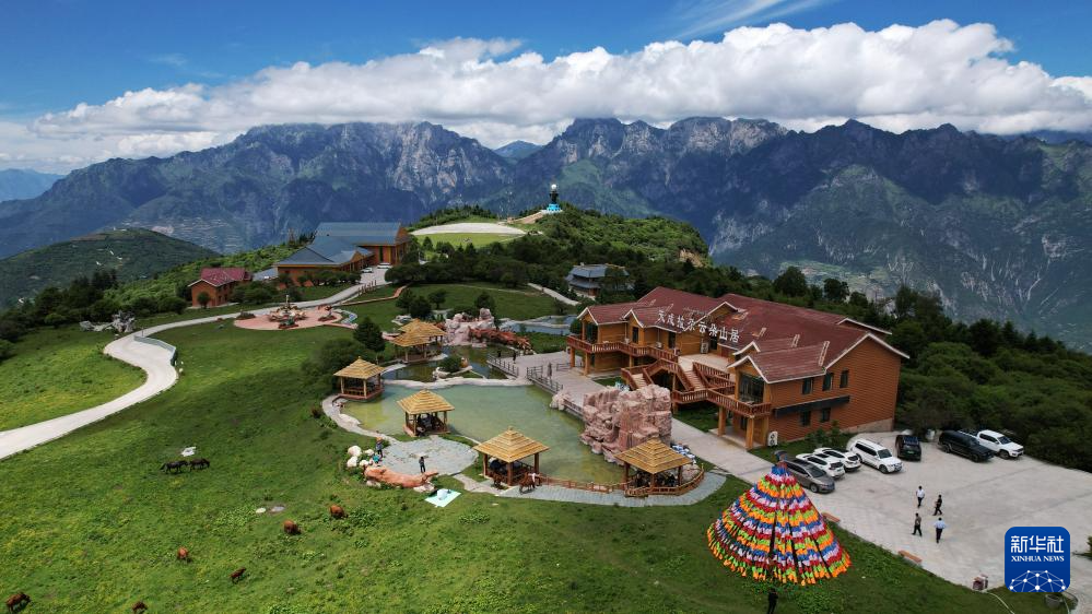 这是7月12日拍摄的舟曲拉尕山一处特色民宿(无人机照片)。新华社记者 陈斌 摄